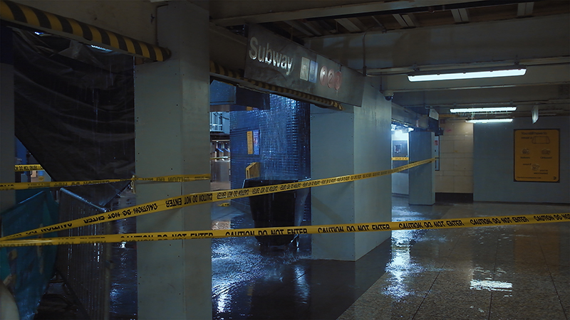 ニューヨーク市の⻲裂から⼤洪⽔が押し寄せる